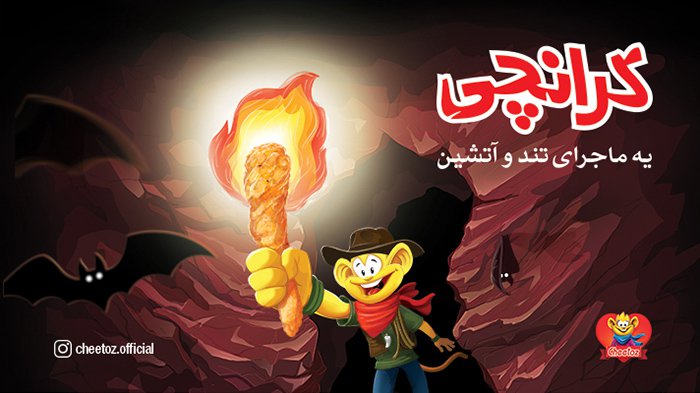 درباره تبلیغات محصولاتی مانند چیپس و… توضیح بفرمایید؟کامیار ذولفقاری: علاوه بر موارد فوق، با هدف مواجه­ی حداکثری مخاطب با محصول، با در نظر گرفتن آرم­آگهی­هایی برای اسنک موتوری و چیپس، برنامه­ی پخش تکمیل­تر گردید. به این ترتیب که برای آرم­آگهی محصول چیپس نرمال، بیشترین مواجه­ی مخاطب با محصول در دستور کار قرار گرفت و در آرم­آگهی اسنک موتوری نیز کاراکتر معروف چی‌توز در نظر گرفته شد که سوار بر موتور است و شعار معروف یه گاز خوشمزه توانسته پیام برند را به مخاطبان برساند.فرزاد ترکمانی: در فضای محیطی نیز، تبلیغات برندها و محصولاتی چون کرانچی و مسترفیش در دستور کار قرار گرفت. در تبلیغات محیطی کرانچی، با توجه به محدودیت­های موجود در این رسانه برای این قبیل محصولات، سعی شد با نگاهی خلاق به این موضوع توجه شود و در ضمن این که، تم تبلیغات قبلی چی توز تداعی می­شود، از لحاظ بصری، وجوهی تازه و جذاب به تصویر کشیده شود. در این تصویر کاراکتر چی‌توز مانند شخصیت اصلی فیلم ایندیانا جونز مشعلی به دست گرفته است. مشعل و شعله یادآور کرانچی و تندی فلفلی بودن محصول است. برای این آگهی شعار«یک ماجرای تند و آتشین» که باز هم یادآور فضای ماجراجویانه­ی فیلم است، طراحی شد.
