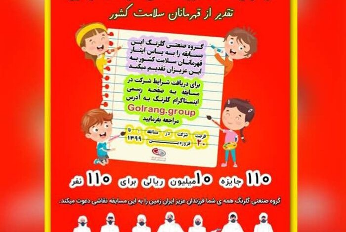 تبلیغات بازرگانی: گروه صنعتی گلرنگ متناسب با شرایط جامعه امروز و شیوع ویروس کرونا اقدامات مهمی را اجرایی کرده است. این گروه چندی است، مسابقه نقاشی را به منظور تقدیر از قهرمانان سلامت کشور در حال اجرا دارد. عاطفه سادات موسوی سرپرست روابط عمومی گروه صنعتی گلرنگ درباره مسابقه نقاشی تقدیر از قهرمانان سلامت کشور گفت: گروه صنعتی گلرنگ یکی از مجموعههای خصوصی کشور است که همواره سعی نموده درراستای اجرای مسئولیت اجتماعی خود نقش موثری را در جامعه ایفا نماید. در ابتدای سال ۹۸ با بروز واقعه سیل در کشور این گروه با حمایت مالی وسیع خود ضمن تأمین بخشی از ارزاق و کالای مورد نیاز سیل زدگان عزیز نسبت به ساخت ۶۰۰ واحد مسکونی نیز اقدام نمود که این واحدها در حال تکمیل وتحویل است . و اینک در روزهای پایانی سال ۹۸ با توجه به بروز بحران پیش آمده ناشی از ویروس کرونا و ضرورت حفظ سلامت جامعه درمانی و پزشکی و پرستاری و همچنین پرسنل خدوم بیمارستانها و مراکز درمانی کشور این گروه ضمن تقبل هزینه تامین یک میلیون ماسک N-95جهت اهداء به قهرمانان سلامت، نسبت به اهداء ۵۱ دستگاه ونتیلاتور BIPAP به بیمارستانهای کشور و اهداء دو دستگاه اکسیژن ساز به دو بیمارستان در جنوب تهران نیز اقدام نموده است .