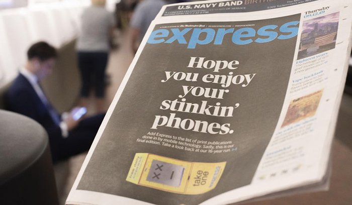 تبلیغات بازرگانی: درست مثل ویدیو که آن را قاتل رادیو می‌دانند، تلفن‌های هوشمند که با سوخت اینترنت کار می‌کنند هم، قاتل روزنامه‌ها‌ قلمداد می‌شوند.این اینترنتی که خیلی دوستش داریم و جوری در زندگی‌هایمان جا خوش کرده که محال است دل‌مان را بزند، خیلی از عادت‌هایمان را عوض کرده است. تغییر عادت‌ هم باعث شده شکل ارائه‌ی بسیاری از خدمات با گذشته متفاوت باشد و به دنبالش برخی از کسب‌و‌کارها تعطیل شوند.ما مثل قبل روزنامه نمی‌خوانیم؛ در تمام دنیا همین اتفاق می‌افتد. اگر اهل خواندن خبر باشیم، نسخه‌های الکترونیکی را به کاغذی ترجیح می‌دهیم.روزنامه‌ی اکسپرس که در متروی واشنگتن رایگان توزیع می‌شد همین چند وقت پیش بسته شد. این روزنامه مانند قربانی‌ای که در آخرین لحظه‌ها انگشتش را به سمت قاتلش می‌گیرد، قاتل خود را معرفی می‌کند: «نصب وای‌فای در مترو»آنها در روی جلد آخرین روزنامه‌شان به مردم می‌گویند که حالا دیگر می‌توانند با تلفن‌های متعفن‌شان خوش باشند. و در جای دیگر اضافه می‌کنند که حالا لابد مسافران مترو به جای خواندن روزنامه، سرهایشان در گوشی‌هایشان است.باید بپذیریم که اختراع‌های جدید، چیزها و خاطرات خوب گذشته را از ذهن‌ها پاک می‌کنند. این‌جا تصمیم‌گیرنده سرعت و کارایی‌ست و نه خاطره‌های شیرین.باید ببینیم آخرین روزنامه‌ی روی زمین چه زمانی خداحافظی می‌کند.نازنین کی‌نژادwww.fastcompany.com