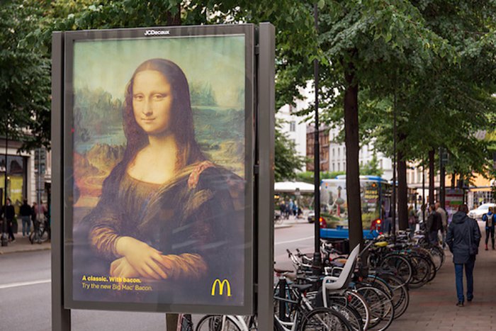 تبلیغات بازرگانی: مکدونالد با بخشیدن حال و هوای جشن به شاهکارهای هنری، مکان های عمومی را به موزه های رایگان برای همه مردم تبدیل کرده است.به منظور معرفی «Big Mac Bacon» این رستوران فست فود زنجیره ای، مکدونالد یک سری پوستر و تبلیغات چاپی را با استفاده از آثار هنری کلاسیک، برای مثال، مونا لیزا اثر لئوناردو داوینچی، پرتره وینسنت ونگوگ از خود و American Gothic» اثر گرانت وودز، با اندکی تغییر اضافی عرضه کرده است: همه آن ها با بیکن ارائه داده می شوند.علاوه بر تصاویر لذتبخش، برند همچنین اشاره هایی به بیکن را در آهنگ «Für Elise» (برای الیزه) بتهوون در رادیو جای داده است.کمپین خوشمزه فوق تلاش مشترکی میان آژانس تبلیغاتی NORD DDB استکهلم، آژانس روابط عمومی Prime و آژانس رسانه ای OMD محسوب می شود.مرضیه فروتنwww.designtaxi.com